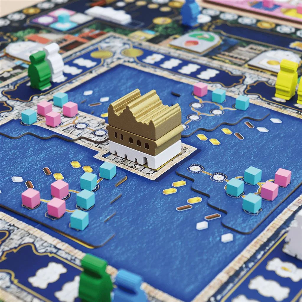 Déplacez votre éléphant de quartier en quartier pour accomplir des actions, puis placez vos ouvriers. Pour ces derniers, le système utilisé est celui des jeux de semis (les mancala), égrainez les ouvriers et faites les actions obtenues par le dernier posé. Les autres joueurs, en fonction de la couleur de cet ouvrier et de l’évolution de leur plateau de joueurs pourront également déclencher des actions.