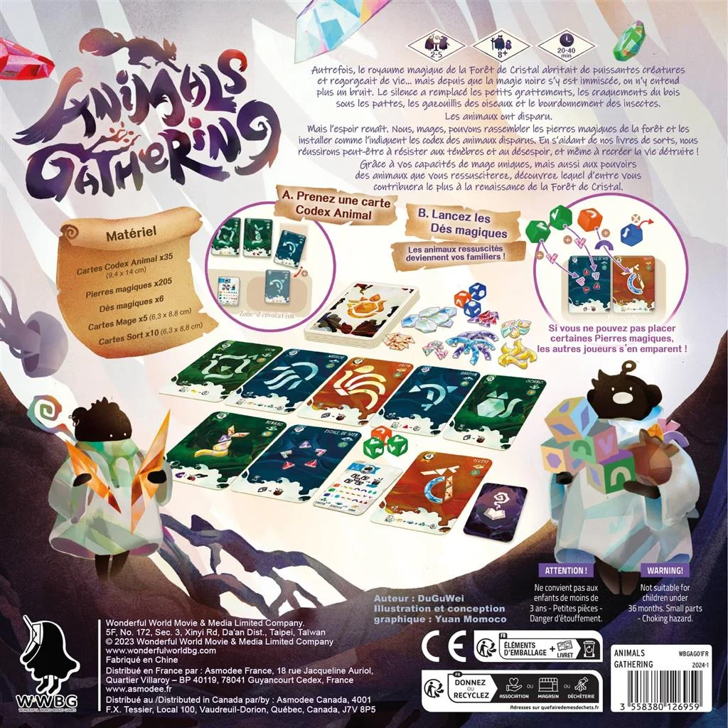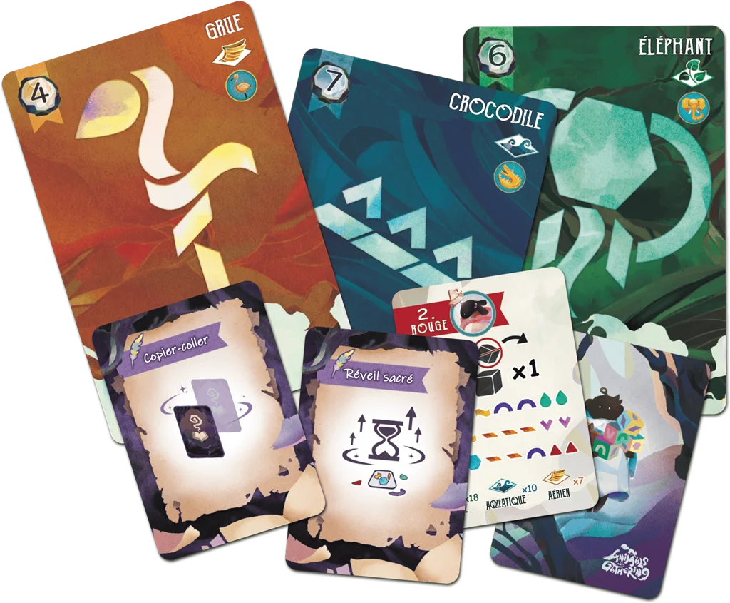 À votre tour de jeu, choisissez une carte Animal et placez-là devant vous, avec celles éventuellement déjà possédées. Lancez ensuite les dés et prenez les pierres qu’elles vous octroient. Placez ensuite ces pierres pour compléter vos cartes, ressusciter les êtres de la forêt et bénéficier de leurs pouvoirs. Mais attention, si vous ne pouvez placer une pierre sur l’une de vos cartes, tous les autres joueurs peuvent l’utiliser pour compléter leurs animaux !
