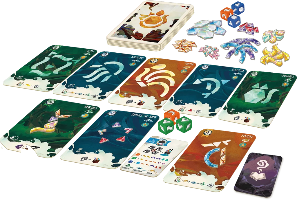 35 cartes Codex Animal, 5 cartes Mage, 10 cartes Sort, 205 pierres magiques, 6 dés, 1 règle