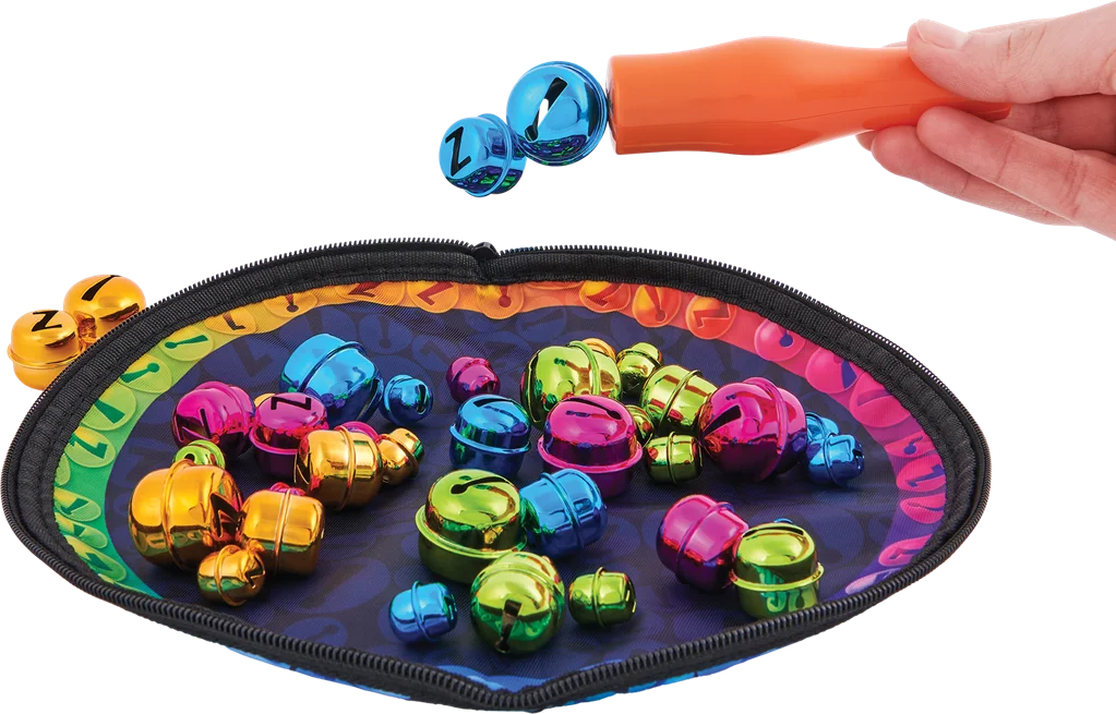 40 clochettes, 1 stick aimanté, 1 pochon plateau de jeu/trousse de transport.