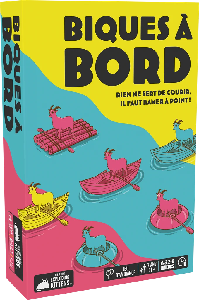 Avec ses visuels colorés, ses règles simples, sa mécanique de morpion revisitée et son ambiance joyeusement chaotique, Biques à Bord est un jeu idéal à sortir en famille ou entre amis ou à l’école. Vous n’aurez qu’une envie : jouer la bêêêlle !