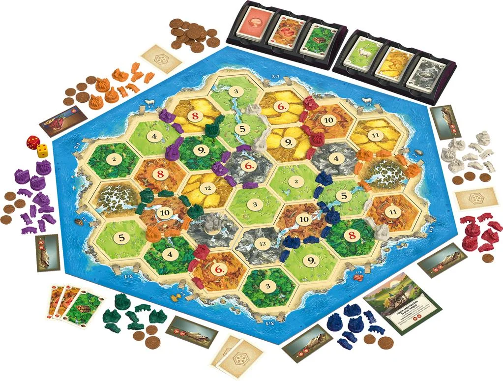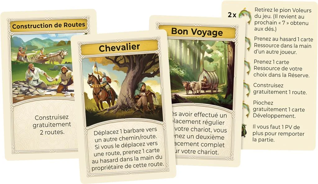 La boîte de base du jeu de plateau CATAN est nécessaire, ainsi que l’extension Barbares & Marchands.