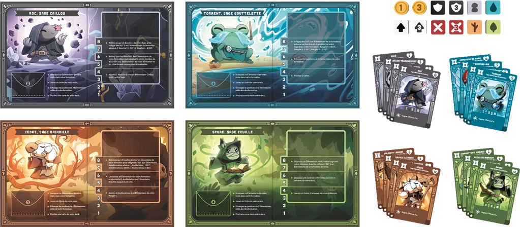 Exploitez la magie de la forêt et affrontez d’autres Sages dans ce jeu stratégique de deck-building conçu par les créateurs de Here to Slay et Casting Shadows. Invoquez les Guerriers élémentaires des factions Caillou, Gouttelette, Brindille et Feuille pour démontrer que vos talents sont supérieurs à ceux de vos adversaires. Au cours des batailles, vous gagnerez en niveau, ce qui vous permettra d’accéder à de nouvelles capacités extraordinaires et à de redoutables Champions. Utilisez les pouvoirs de vos élémentaires, attaquez ceux de l’adversaire, et défendez-vous au mieux. Parviendrez-vous à sortir victorieux de ces combats acharnés et à vaincre le sage de votre adversaire ?