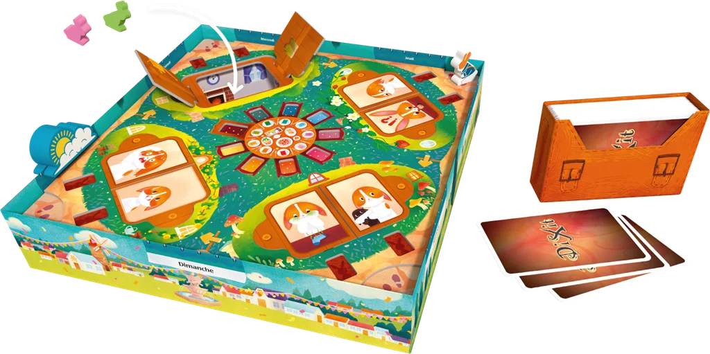 Ensemble, incarnez les facteurs du pays des lapins et distribuez toutes les invitations à la fête d’anniversaire. Cette version coopérative de Dixit, adaptée aux plus jeunes, les invite à choisir et interpréter des images. À chaque tour, un joueur incarne la Factrice en chef et choisit une illustration représentant l’émotion d’un invité. Elle place la carte choisie face cachée : c’est l’Invitation. Les autres joueurs, jouant les Apprentis Facteurs, doivent distribuer son courrier au second lapin du Terrier, celui qui n’a pas été choisi par la Factrice. Ils choisissent tous une carte qui correspond à l’humeur de ce second lapin et ils la placent face cachée sur l’Invitation. La Factrice en chef prend ensuite toutes les cartes et les mélange et les retourne face visible. Les apprentis facteurs doivent retrouver l’Invitation, c’est à dire la carte intrus dont l’image ne correspond pas aux autres. Au tour suivant, on passe à un autre terrier et un autre joueur incarne la Factrice. Avec ses 84 cartes magnifiquement illustrées, Dixit Kids déploie un imaginaire magique et immersif qui captive les enfants. Ils associent et interprètent les images, stimulant leur créativité tout en apprenant à jouer ensemble. Doux et malin, parfait pour jouer en famille et découvrir la magie de Dixit dès 6 ans.