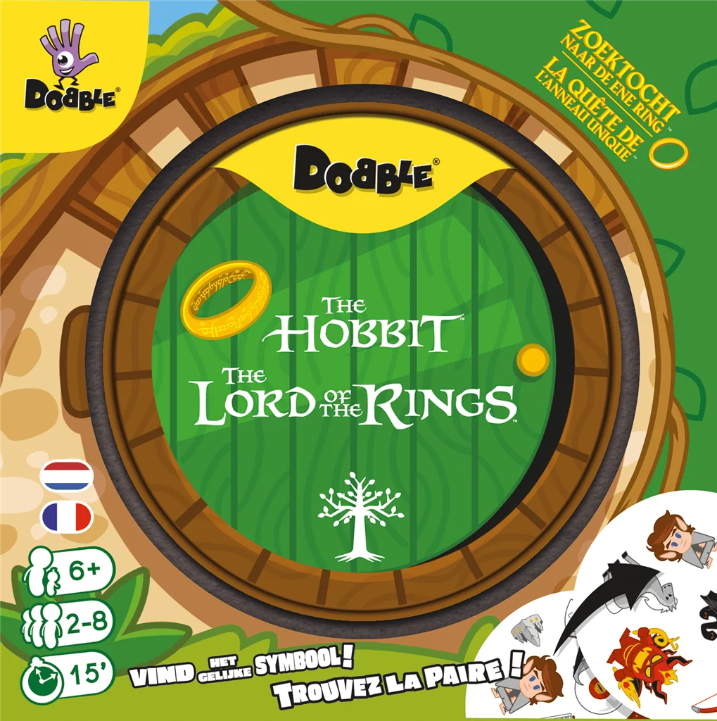 Avec Dobble Le Seigneur des anneaux – Le Hobbit, repérez le seul symbole identique entre deux cartes et soyez le…