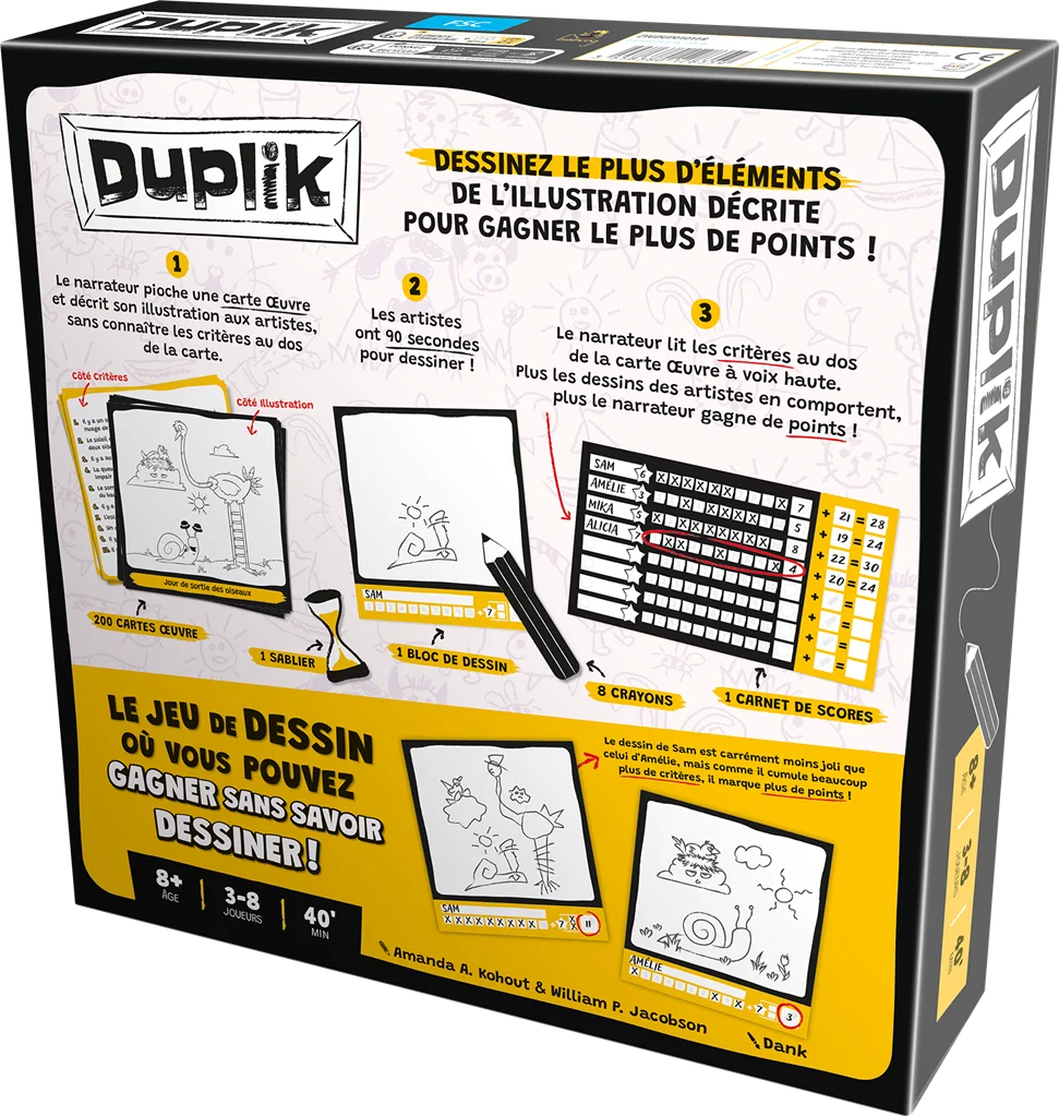 Dans Duplik, l’un des participants joue le rôle du maître d’œuvre. Sa mission : décrire une illustration rigolote en donnant aux autres joueurs autant de détails que possible.