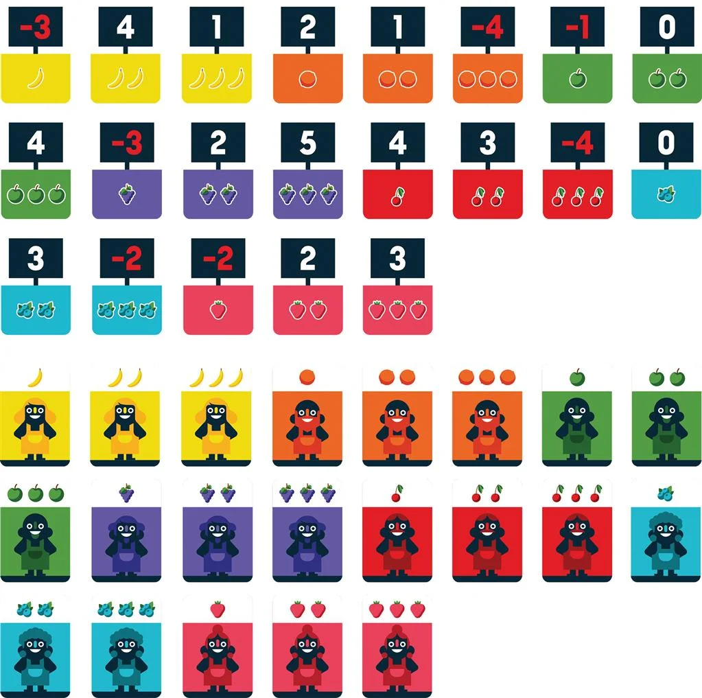 C’est la fin du marché. Les étals regorgent de fruits colorés, mais leur valeur reste un mystère. À chaque tour, les joueurs choisissent une carte visible représentant un fruit (cerise, banane, fraise…), qu’ils placent face cachée devant eux. Le twist : la valeur de chaque type de fruit n’est révélée qu’à la toute fin, en fonction de la dernière carte restante sur chaque pile. Bluffez vos adversaires, mémorisez ce qu’ils prennent, et tentez de collecter les fruits les plus rentables.