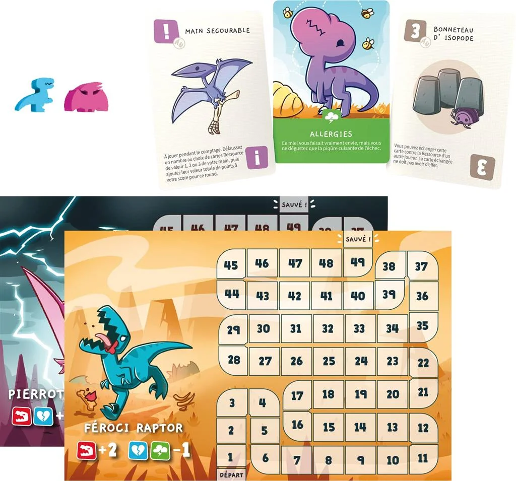 Entre les poulets tueurs et les tornades mortelles, faites survivre au maximum vos dinosaures dans cette extension permettant de jouer à 5 et 6 joueurs !