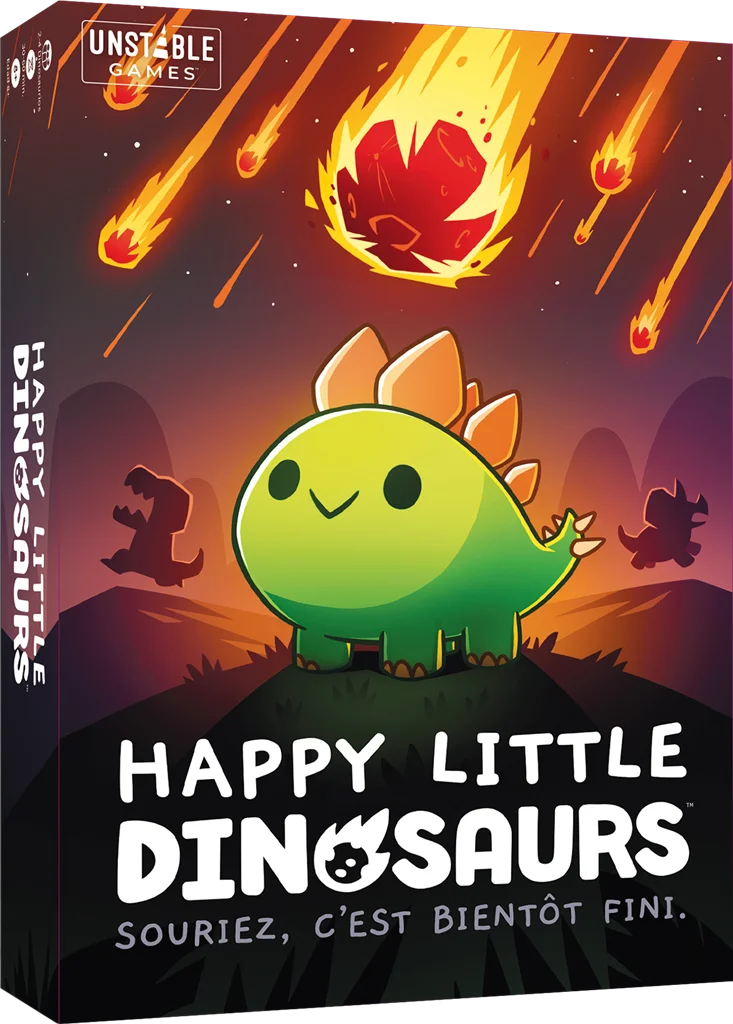 Dans Happy Little Dinosaurs, vous incarnez un Dinosaure sur lequel la vie s’acharne encore et encore. Vous essaierez d’éviter les Catastrophes naturelles, prédatrices et émotionnelles tout en esquivant les Météorites ; et comme dans la réalité, vous risquez bien d’échouer. Le premier Dinosaure à atteindre 50 points (ou le dernier survivant) remporte la partie !