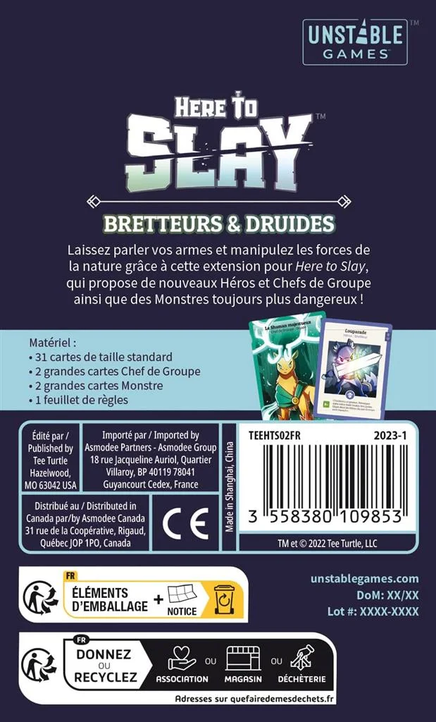 Les guerriers et les druides rejoignent la mêlée dans cette extension de Here to Slay. Cette extension propose de nouveaux chefs, de nouveaux héros et de nouveaux monstres. De quoi relancer l’aventure de Here to slay avec de nouveaux challenges à relever.