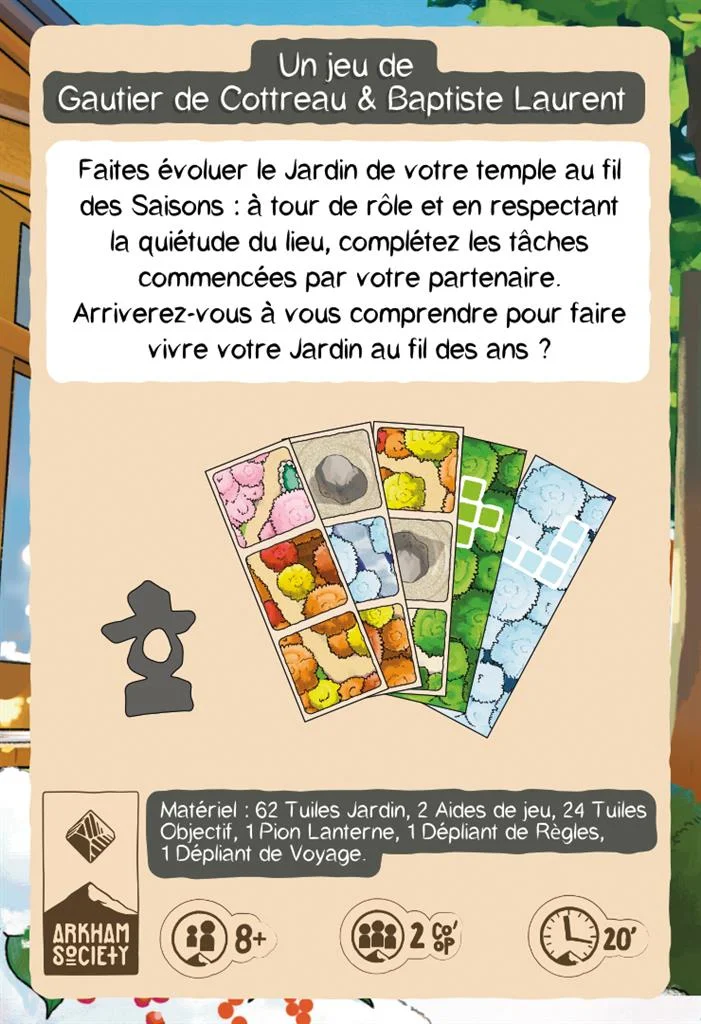 A tour de rôle, et en respectant la quiétude des lieux, les joueurs placent une tuile Jardin ou donnent des indications à leur partenaire grâce à la Lanterne, car il est interdit de communiquer directement ! En effet, vous ne pouvez parler durant la partie. À vous de faire comprendre vos objectifs à la manière dont vous placez vos tuiles, vos couleurs et votre lanterne.