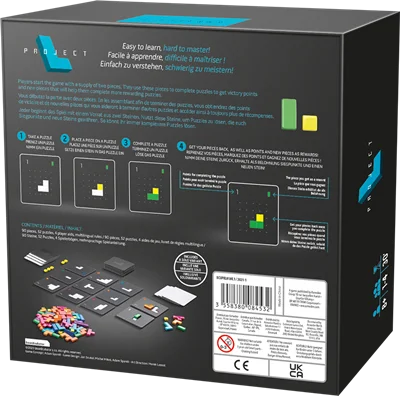 Project L est un jeu rapide alliant casse-tête 3D, pose de tuiles et de magnifiques pièces en acrylique. Mettez au défi vos amis dans un jeu au design simple, mais qui propose un casse-tête qui est loi de l’être. Les tuiles complétées vous permettront d’amasser de nouvelles pièces sur le chemin de la victoire. Serez-vous plus futé que vos adversaires ?