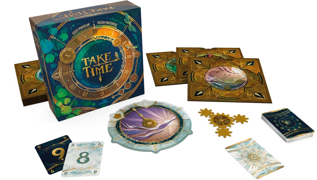 Prenez part à une aventure coopérative unique où chaque seconde compte. Dans Take Time, vous affrontez 40 horloges énigmatiques en équipe. Ouvrez l’une des enveloppes, retournez la première horloge, puis mélangez les 12 cartes Lune et les 12 cartes Soleil (numérotées de même manière) avant de les distribuer entre les joueurs. Attention, personne ne regarde ses cartes pour l’instant.